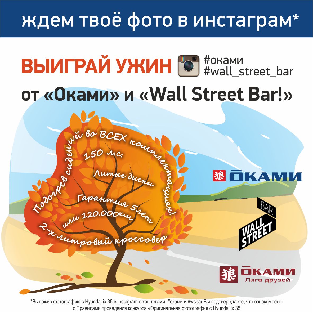 - В конкурсе могут принять участие люди, подписанные на аккаунт @okami_ekb в инстаграм и участники группы Wall Street Bar